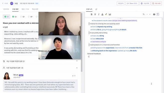특히 영어 실력을 높이기 위한 목표 설정과 학습 추천, 학습자가 튜터의 피드백 내용을 학습해 같은 영어 실수를 반복하지 않도록 트래킹까지 한다. 이성파 대표는 "원어민 튜터와 AI가 상호작용하며 교육의 질을 높이는 수준까지 범위를 넓혀가겠다"고 했다.
