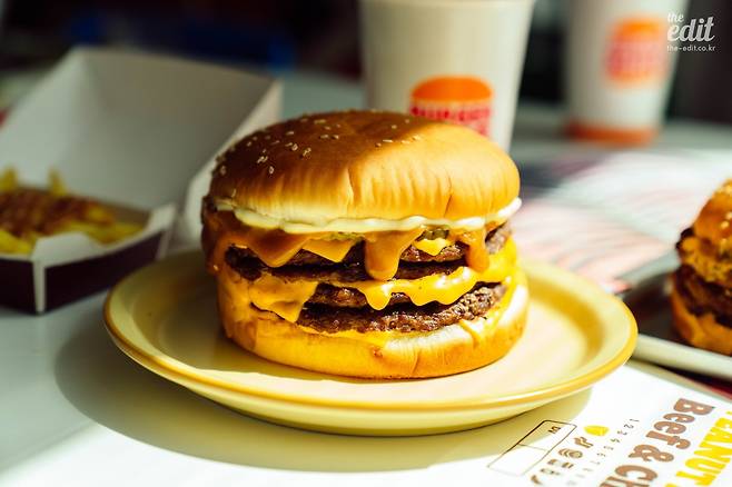 크기와 비주얼 자체가 압도적인 스태커4는 상당히 인스타그래머블하다. 다르게 말하자면 ‘오늘 점심은 간단히 햄버거나 먹을까’ 했을 때의 그 햄버거는 아니라는 뜻이다. 일상보다는 비일상, 평일보다는 주말에 어울리는 이벤트 같은 메뉴다. 사이즈가 정말 커서 대식가인 나도 스태커4를 다 못 먹었다. 심지어는 한 입 베어 먹기에도 벅차서 턱이 빠지지 않을까 걱정이 될 정도였다. 신체 건강한 젊은이라면 한 번쯤 도전해봐도 좋겠다. 만약 피넛버터의 맛을 간직하면서도 일상적인 메뉴를 먹고 싶다면 스태커2 또는 스태커3를 추천한다.