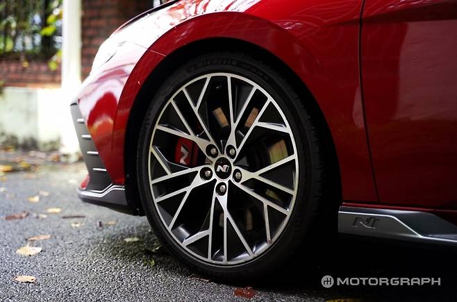 순정 타이어도 다르다. 아반떼 N은 300마력부터 600마력까지 아우르며 전 세계 고성능차의 선택을 받은 미쉐린 PS4S(245/35/R19), 코나 N은 현대차 N 전용 마크 'HN'가 붙은 피렐리 P제로 HN(235/40/R19)가 장착된다. 높은 접지력과 균일함만 놓고 본다면 PS4S가 P제로보다 앞선다고 볼 수 있겠다.