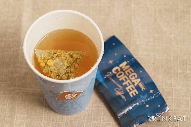 그럼 총평을 시작해 볼게요. 세 티백을 비교했을 때 내용물이 가장 예쁜 건 메가커피였어요. 그런데 내용물이 예쁘다는 건, 그만큼 입자가 커서 잘 우러나지 않는다는 의미였나봐요. 다른 제품들과 같은 시간 우렸음에도 물이 필요 이상으로 많이 들어간 듯 밍밍했습니다. 색 또한 확연하게 연했어요. 메가커피를 맛본 팀원들은 ‘앞 두 제품과 비슷한 맛을 내려면 같은 물양에 적어도 티백 두 개는 같이 우려야겠다’라는 의견을 낼 정도였다니까요. 메가커피 측에서도 이 점을 알고 있는지, ICE로 시키면 티백 두 개를 우려 주는 센스를 발휘하더라고요. 하지만 가격을 생각하면 이 또한 감지덕지~♪