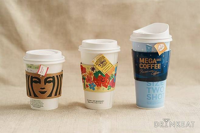 셋 중 가장 저렴한 메가커피는 차 전문기업 삼원티앤비의 자체 브랜드 ‘T-Brise(티브리즈)’를 사용합니다. 합리적인 가격에 높은 퀄리티를 선보이기 때문인지 SPC, 이디야, CJ 등 다양한 식품 기업과 협업을 이루어 왔어요.