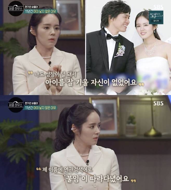 이어 한가인은 “결혼하고 11년 동안 아이를 안 낳았다. 내가 어려서 아이를 잘 키울 자신이 진짜 없었다. 남편과 합의하고 안 낳은 건데 인터뷰할 때마다 아기 언제 낳느냐고. 서로 사이가 안 좋다는 소문이 많았다. 연관검색어로 불임이 따라다녔다”라고 말했습니다.
