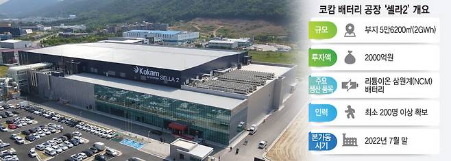 코캄은 25일 충북 음성에 2GWh 규모의 리튬이온 배터리 공장 '셀라(Sella)2'를 완공했다.