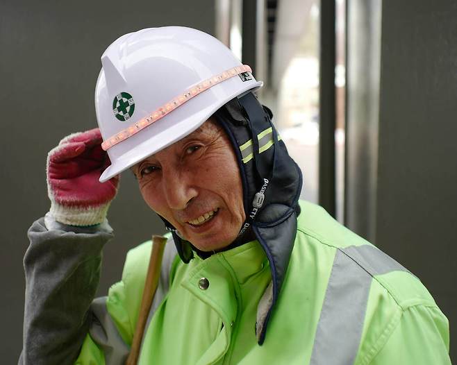 유니폼의 숨겨진 디테일을 소개하자면? 오전 6시부터 오후 3시까지 업무를 보는데, 아직 오전 6시면 깜깜하다. 헬멧에 부착된 안정 등이 도움이 많이 된다.