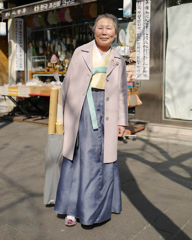유니폼의 숨겨진 디테일을 소개하자면? 나의 머리 스타일도 유니폼 요소 중 하나라 생각하며, 나의 흰머리가 좋다. 왜냐하면 나이가 들어가는 건 시간이 흐름에 당연한데 주변에 많은 사람이 검정 머리로 염색하는데 나는 자연스레 나이가 들어가는 나의 모습마저 너무 좋다. 그리고 평소 비녀를 잘 꽂고 다닌다.