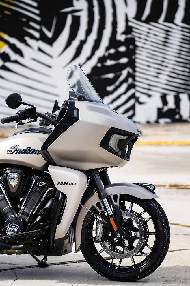 도전자라는 이름의 챌린저에 이어 이번에는 ‘추격’이다. 무엇을 추격하는지는 말 하지 않아도 아 알 것이다. 이처럼 인디언의 도발적인 네이밍이 돋보이는 뉴모델 ‘퍼슈트’는 챌린저를 기반으로 하는 대륙횡단 클래스의 럭셔리 투어링 모델이다. 챌린저와 공유하는 차체 위에대 형 투어링 탑케이스와 각종 옵션과 편의장비를 더해 더욱 편안한 투어링을 돕는다. 1768 cc 수랭 파워플러스 엔진은 121마력에 178Nm의 토크를 낸다. 3가지 주행모드와 IMU기반의 트랙션컨트롤과 ABS등 최신 기술도 고스란히 적용되어 있다.