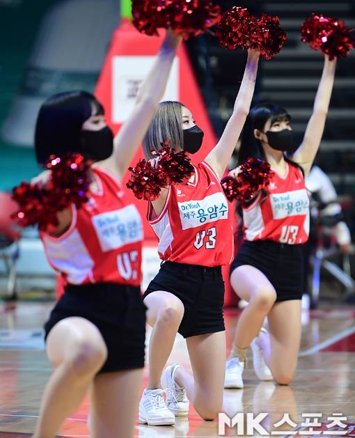 31일 오후 경기도 고양체육관에서 2021-2022 프로농구 서울 SK와 고양 오리온의 경기가 벌어진 가운데 서현숙 등 오리온 치어리더들이 홈 최종전에서 홈팬들을 위해 멋진 공연과 이벤트를 벌였다.