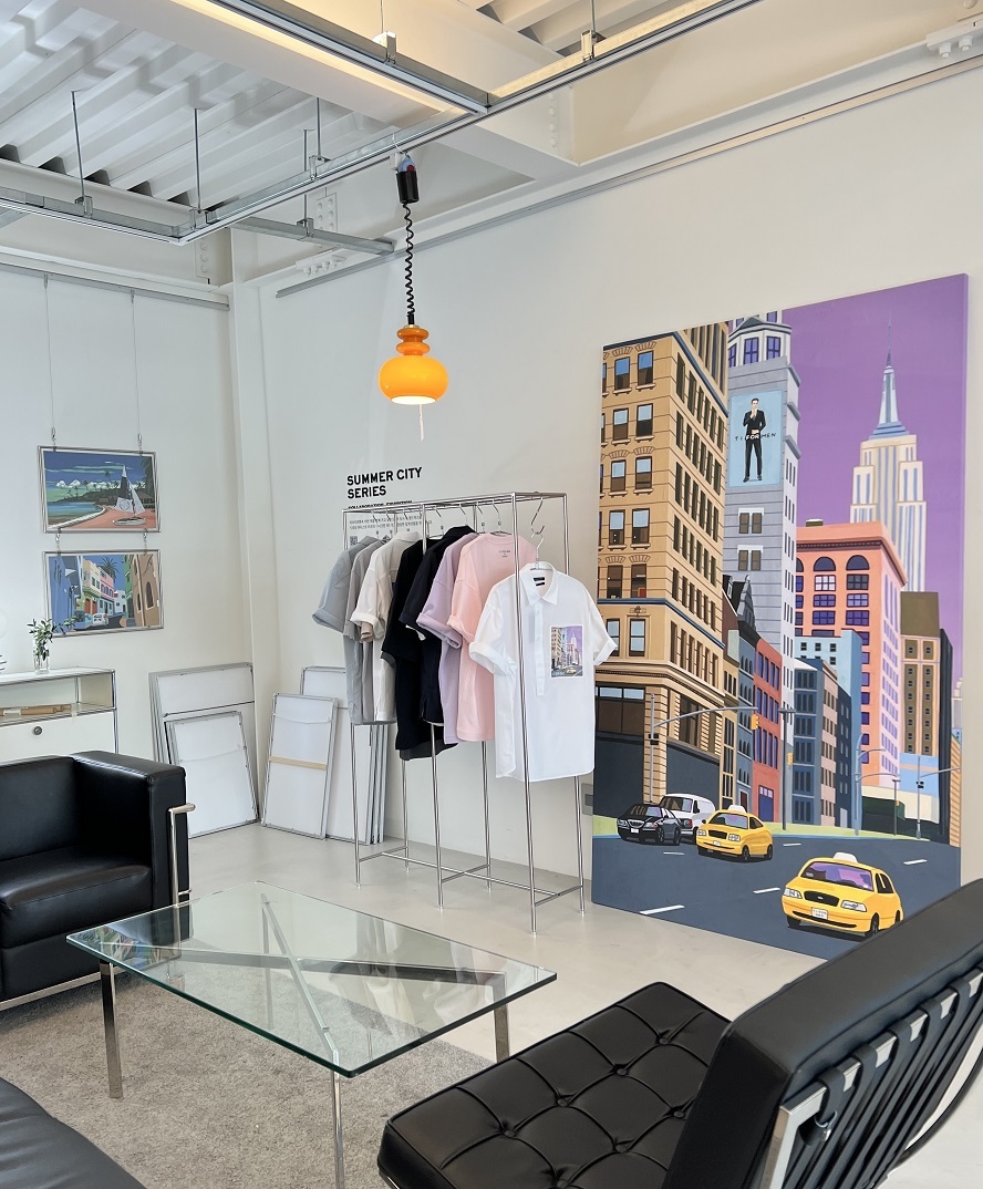 남성복 브랜드 '티아이포맨'이 서울숲 인근 가구점 '라인앤라운드'에서 팝업 전시를 진행합니다. 이번 전시는 '여름철 티아이포맨과 함께 가고 싶은 5개의 도시 속 랜드마크'를 아티스트 '리곡'의 프린트로 협업한 컬렉션을 선보입니다.