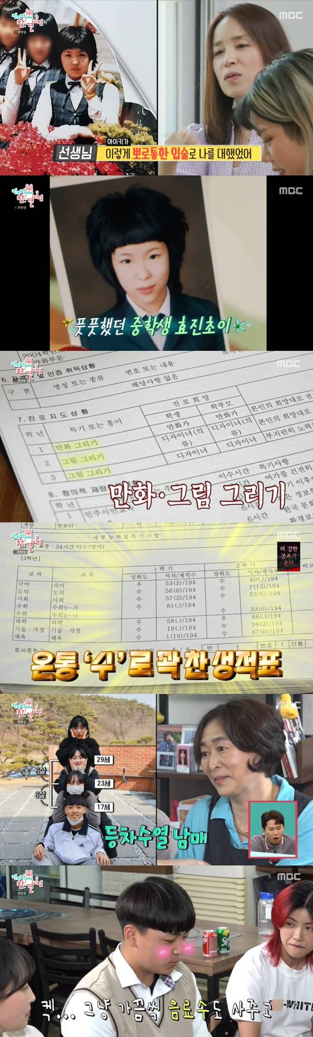 이어 아이키의 성적표가 공개됐다. 1학년 때 200여 명 중에 150명을 했던 아이키. 그는 "선생님을 만나 바뀌었다"며 수와 우로 가득한 2학년 성적표를 공개했다. 그의 은사는 "혜인이가 학습 진보상을 받았다. 평균이 10점 이상 올랐다는 것"이라며 뿌듯해했다.