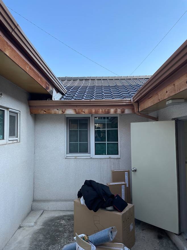 대문을 열고 들어가면 눈 앞에 보이는 저희 집 풍경, 마당입니다. 오래된 한옥의 여러 방을 여러 채의 집으로 나눈 듯한 집이었어요. 처음 집을 보러 왔을 때 한옥 기와 지붕, 마당까지 있는 ㄷ자 구조, 그리고 단층인 점에 눈길이 갔어요. 오피스텔의 천편일률적인 구조가 답답했었거든요. 오른쪽이 저의 집이고 한 마당을 앞집과 공용으로 사용해요. 지금까지 좋은 이웃으로 지내고 있어요!