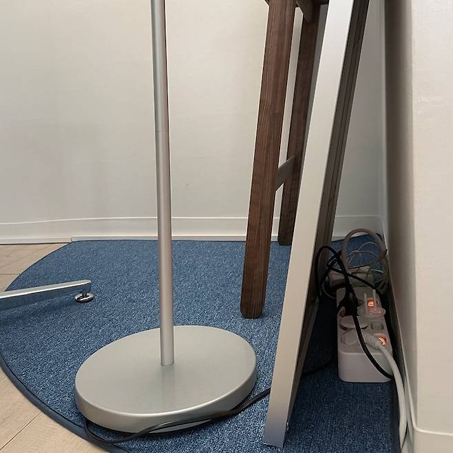 침실에 있을 때 복도에 둔 수납장이 보여 깔끔한 수납장을 두고, 스탠을 활용하기 위해 스탠 다리를 연결했어요. 수납장 위에는 스피커와 디퓨저 가습기, 액자 등 제가 좋아하는 것들로 꾸며 보았습니다. 수납장을 조립할 때 문을 반대로 달아버리는 어처구니 없는 실수를 하였지만 콧구멍같고 귀엽네 라며 자기 세뇌 후 살고 있습니다.