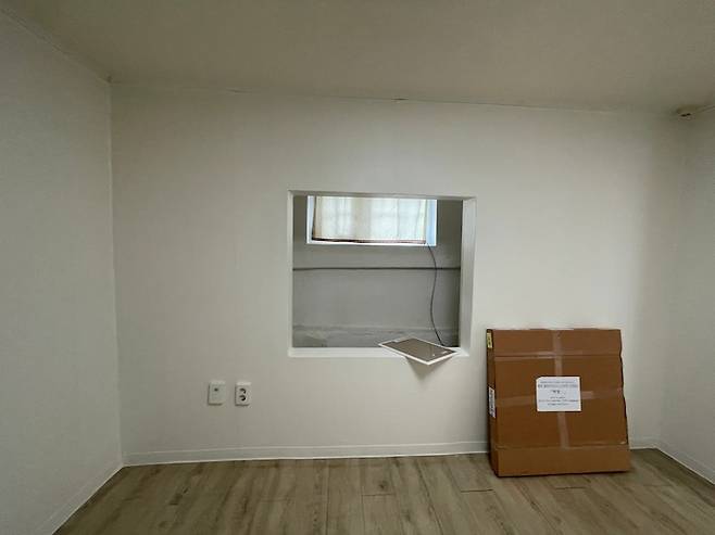 이사왔을 때의 벌거숭이 모습이에요! 다행이 벽지는 전 세입자분께서 화이트로 셀프시공을 해놓은 상태라 퀄리티가 좋진않아도 깔끔해서 수정할 필요가 없었어요~ 그리고 제가 이 집을 계약한 가장 큰 이유는 사진에 보이는 벽에 있습니다. 도무지 그 용도와 이유를 알 수 없는 벽의 구조… 누군가에겐 불편하고 이상하겠지만 제게는 너무나 귀여운 요소였어요.