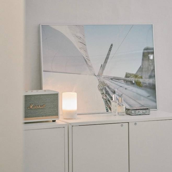 집에 액자를 두면서 어떤 이미지를 걸 것인가 고민을 많이 했어요. 시중에 판매하는 포스터들도 많고 영감을 주는 이미지들이 많이 있지만, 제가 직접 포스터 겸 월력을 디자인하여 넣었어요. 그리고 포토그래퍼인 남자친구의 개인 작업 사진을 넣었습니다. 여러 가지로 동기 부여가 되는 오브제에요.