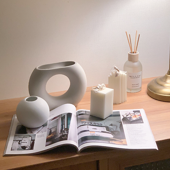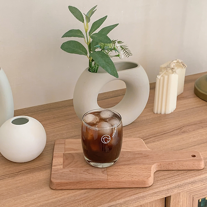 이 테이블은 홈카페 영상을 찍거나, 예쁜 소품 사진을 찍을 때 자주 사용하고 있습니다. 테이블이 허전할 때는 화병에 생화나 조화를 꽂아두기도 하고요. 확실히 생화가 더 예쁘긴 하지만, 그 모습이 오래가지 않는다는 게 좀 아쉬운 부분인 것 같아요.