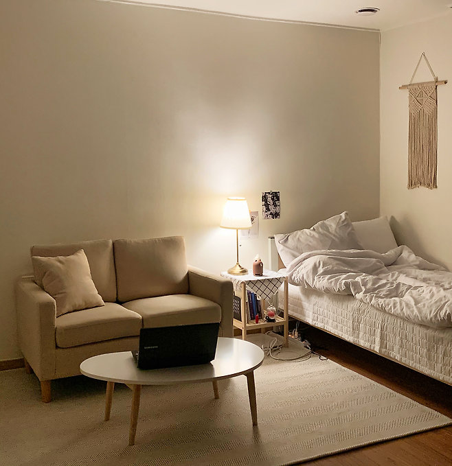 원래 저의 침실 공간에는 위 사진처럼 협탁과 소파가 있었는데요. 현재 이 가구들은 당근으로 판매해버린 상태입니다.