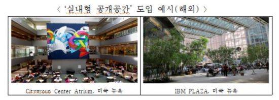 서울시는 날씨와 계절에 상관없이 이용할 수 있는 '실내형 공개공간'을 조성할 경우 건축기준을 완화해주는 조례를 전국 최초로 도입한다고 2일 밝혔다.