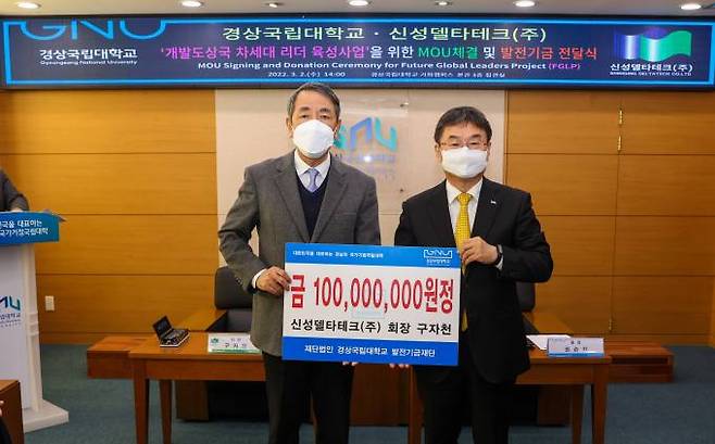 경상국립대학교(GNU·총장 권순기)와 신성델타테크(회장 구자천)가 개발도상국의 경제발전과 기업 성장에 기여할 차세대 리더를 육성하기 위해 손을 잡았다.