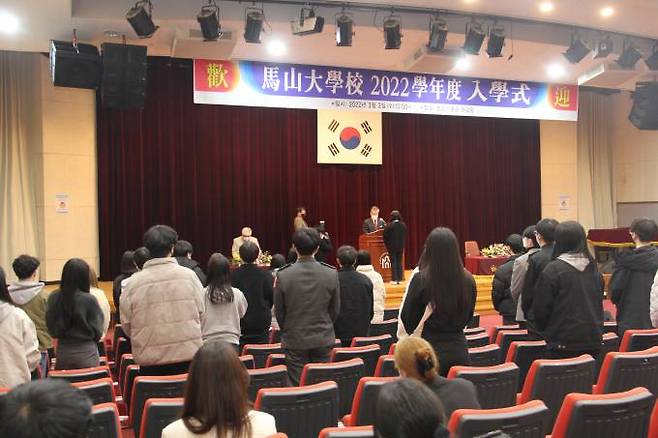 마산대학교(총장 이학은)는 2일 청강기념관 1층 대강당에서 이학은 총장과 대학 관계자 및 신입생 대표 등 100여명이 참석한 가운데 ‘2022학년도 신입생 입학식’을 가졌다.