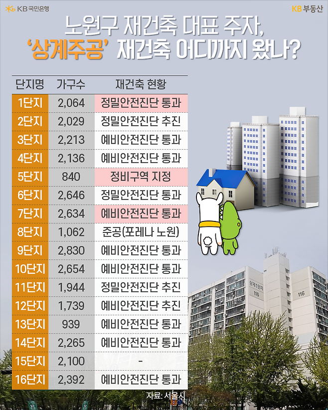 특히 서울 강북권은 재건축 연한을 충족한 단지가 다수 존재하고 있습니다. 이에 서울 강북권에 대한 관심이 그 어느 때 보다 뜨거운 가운데, KB부동산에서는 강북권 중에서도 중저가 아파트가 밀집된 지역. 바로 ‘노원구’에 위치한 재건축 단지의 현황을 짚어봤습니다.