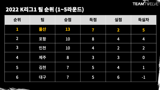 하나원큐 K리그 2022가 개막한지 한 달 가까이 지났다. 역대 가장 이른 개막으로 시작해 한 달 동안 숨 쉴 틈 없이 일정이 진행됐다. 5라운드까지 끝난 현재, 이전과는 다른 흐름이 눈에 띈다.