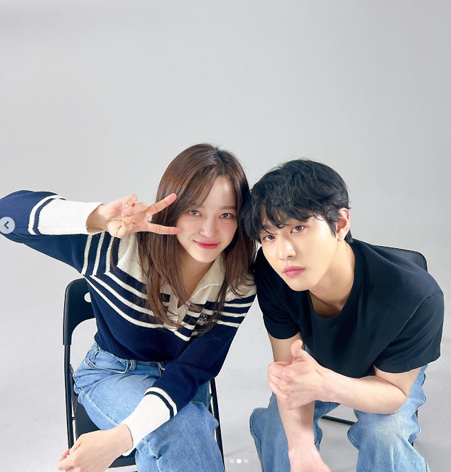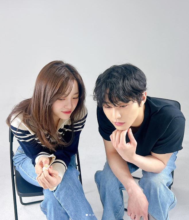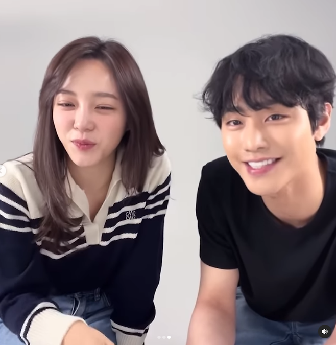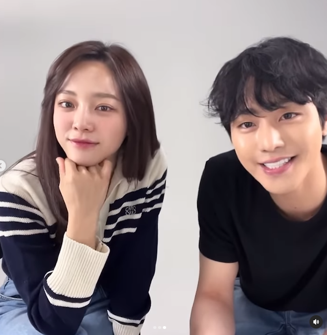 김세정은 4일 자신의 SNS를 통해 청바지에 셔츠로 시밀러룩을 입은 안효섭과 함께 노래하는 영상을 올렸다. '사내맞선' OST인 멜로망스의 '사랑인가봐'로 '하태커플' 강태무(안효섭 분) 신하리(김세정 분)의 러브 테마다.