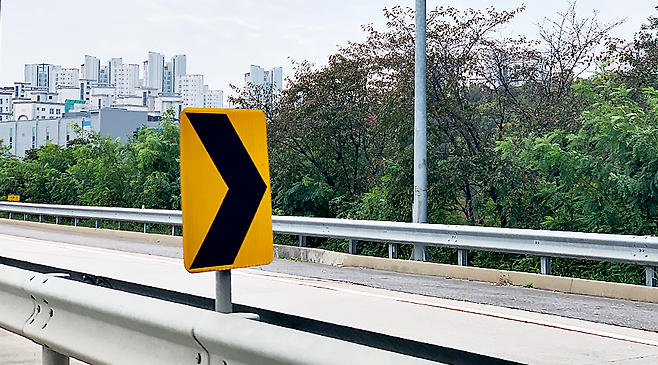 고속도로를 주행하다 보면 도로 가장자리에 '>' 모양의 표지판을 보신 적이 있으실 겁니다. 갈매기 표지판이라고 하는데요. 운전자가 도로의 형태를 파악하기 힘든 곳에 주로 설치되어 있으며 '>' 기호를 통해 도로가 선형의 형태인지, 굴곡의 형태인지를 알려주는 역할을 하고 있습니다.