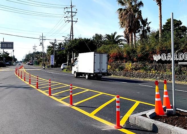 표지병은 노란색 반사판이 수직으로 설치되어 있기 때문에 노란색 차선의 자체 반사 효과보다 효과가 더 뛰어나기에 멀리서도 쉽게 확인이 가능하다는 장점이 있습니다.