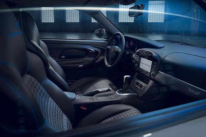실내는 996 카레라에 적용됐던 소재를 완전히 복원 및 수정을 거쳐 새롭게 구성됐다. 맞춤 제작된 카본 그레이 인테리어에 수작업으로 트윌-페피타 무늬의 시트 인서트 및 도어 트림을 탑재했다. 헤드 유닛은 안드로이드 오토와 애플 카플레이 호환 기기로 교체했다.