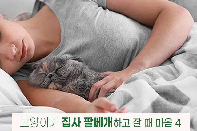 완전히 마음을 연 사람이 곁이라면 자는 모습 또한 달라지는 건 당연한 일일 것입니다. 고양이가 정말 좋아하는 사람 곁에서 자는 모습 5.
