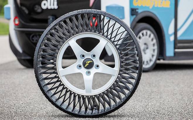 “공기압 걱정 없이 타이어를 굴릴 수 있다면 얼마나 편할까?” 타이어에 바람을 넣을 때마다 드는 생각이다. 그런데 머지않아 그런 걱정으로부터 자유로운 타이어를 만날 수 있을지도 모르겠다. 지난 26일(현지시간), 미국의 타이어 제조사 ‘굿이어(Goodyear)’가 공기압 보충이 필요 없는 ‘에어리스 타이어(Airless tyre)’ 프로토타입의 주행 영상을 공개했다.