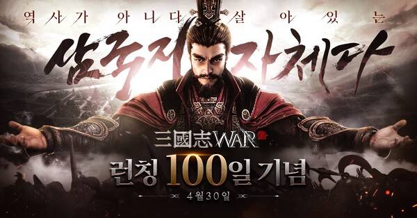 아카소어게임즈는 신작 모바일 전략 게임 '삼국지워(삼국지WAR)'의 정식 출시 100일 기념 이벤트를 5월12일까지 실시한다.
