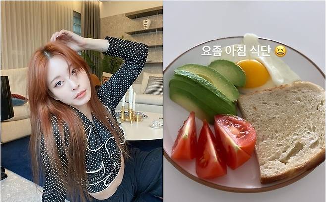 한예슬의 아침 식단도 단출하다. 식빵 1조각, 계란후라이, 아보카도 1/2개, 토마토 1/2개가 요즘 그의 아침 식단이라고..