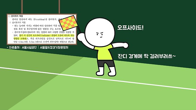 - 대한축구협회 20-21 경기규칙 : https://www.kfa.or.kr/img_src/data_rule/20_21_laws_of_the_game.pdf ★ - 서울월드컵경기장 잔디관리 매뉴얼 : https://www.sisul.or.kr/open_content/main/bbs/bbsMsgDetail.do?msg_seq=70&bcd=dataform