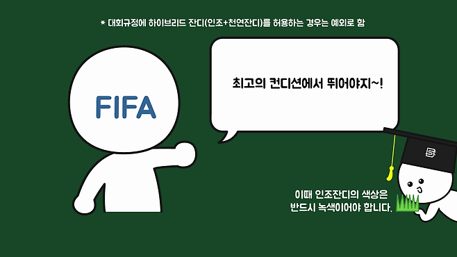 그리고 국제축구연맹의 경기규칙에는 잔디 문양에 관한 내용 없이 규격에 관한 내용만 확인할 수 있었습니다. 궁금증이 해결되셨나요?