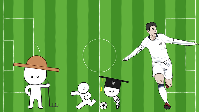 축구 경기에서 주인공은 단연코 선수들입니다. 그래서 경기를 볼 때도 선수의 플레이를 집중해서 보는 편이고, 그 주변의 것들은 봐도 무심코 넘기기 마련입니다. 그런데 선수들이 활약하고 있는 축구장 잔디를 보면 대개 초록색과 연두색이 반복된 줄무늬 문양으로 되어 있습니다.