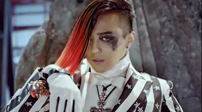 음악 스타일만큼이나 실험적인 헤어에 도전했던 지드래곤! 〈FANTASTIC BABY〉에선 머리 한쪽에만 새빨간 레드 헤어 피스를 붙여 강렬하고 파격적인 분위기로 변신을 시도했다. 사람들에게 신선한 충격을 선사했던 빨간맛 컨셉~.