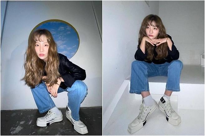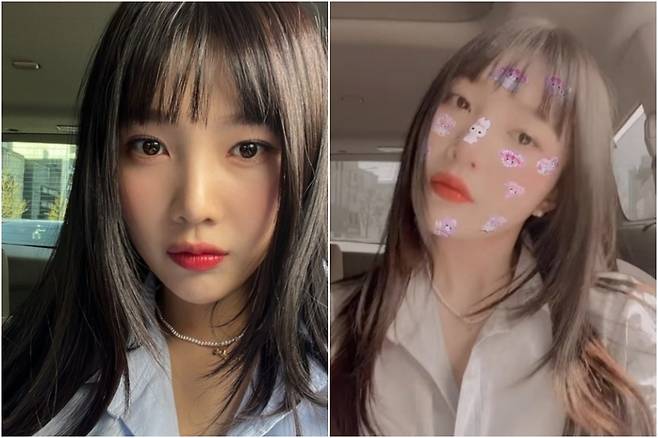 레드벨벳 슬기도 앞머리에 웨이브를 넣어 상큼 발랄 꽃미모를 뽐냈다.