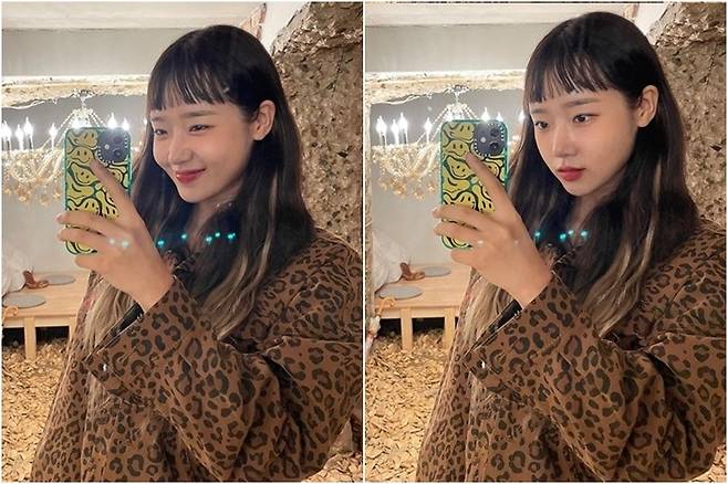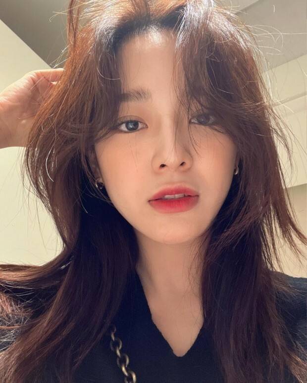 설현은 사랑스러운 앞머리 펌을 시도했다.