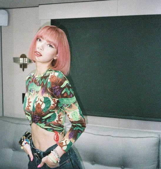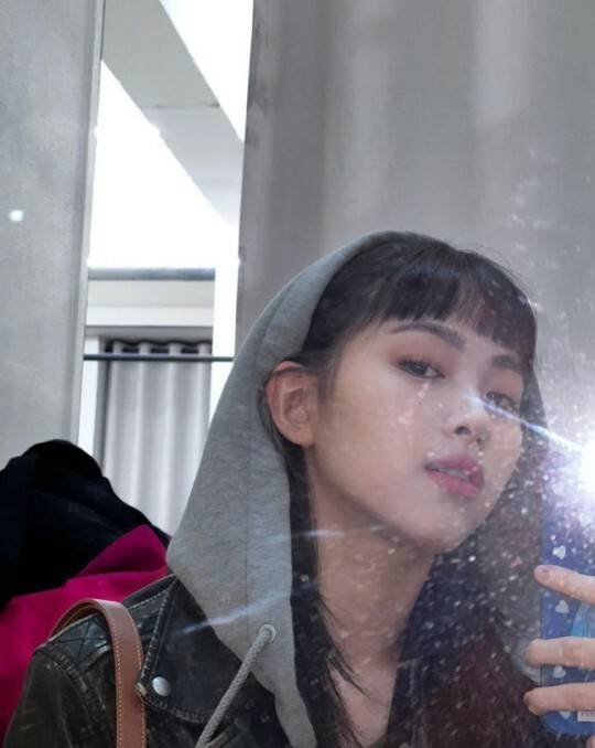 단발머리에 풀뱅이 시그니처 헤어인 블랙핑크 리사.
