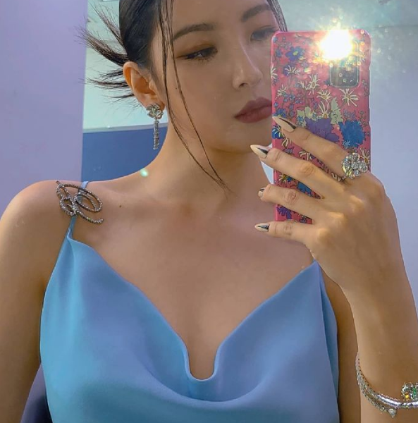 한 꼬집 끌어내린 더듬이 앞머리가 얼굴을 자연스럽게 감싸 선미의 청순하고 가녀린 매력을 끌어올려줬다.