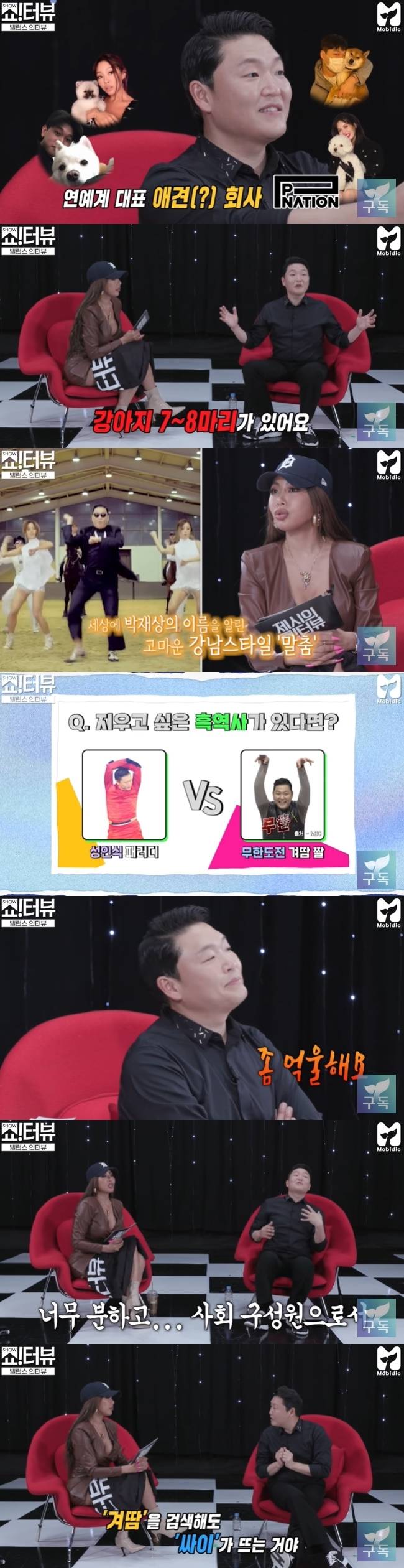 지난 4월 29일 공개된 SBS 유튜브 ‘모비딕’ 채널의 웹예능 ‘제시의 쇼!터뷰’에는 게스트로 싸이가 출연했다.
