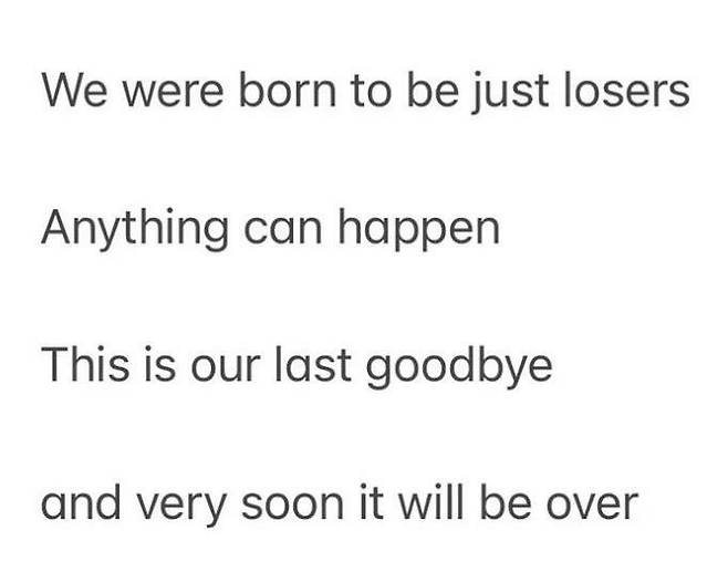We were born to be just losers. Anything can happen. This is our last goodbye and very soon it will be over'