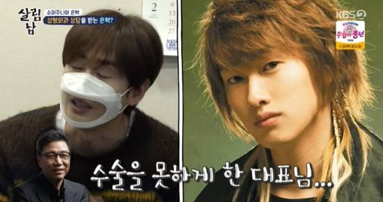 이때 은혁은 "저희 얼굴도 한 번"이라며 부탁했다. 은혁은 "저도 성형외과를 처음 와 봐서. 데뷔 전에 저도 '쌍꺼풀 수술 안 해도 되나요?'라고 했더니 (이수만 총괄 프로듀서가) '이거 하면 다 해야 된다'라고 해서 안 했다"라며 고백했다.