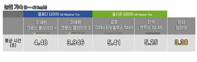 이번에 다룰 타이어 그룹은 올웨더, 올시즌 간의 대결이다. 각각의 타이어 성격이 다르기 때문에 직접 비교하기엔 부담이 따른다. 그러나 두 타이어의 성능 차이가 궁금했다. 그래서 장르를 나누되 같은 기준으로 평가해 봤다.