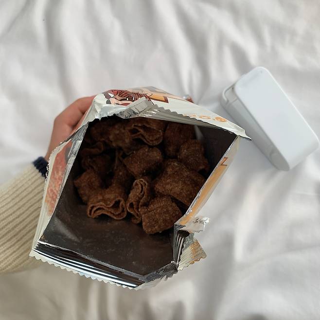 근데 저렇게 봉지 과자를 한 번 트면 꼭 다 먹어야 할 것 같은 느낌이에요