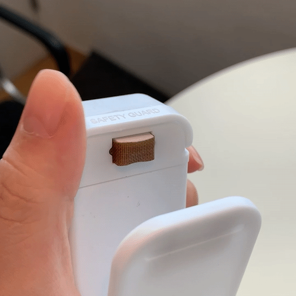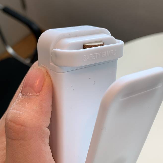 열선을 이용해서 접착시키는 제품이기 때문에 이렇게 움직이는 세이프티 가드가 있어요