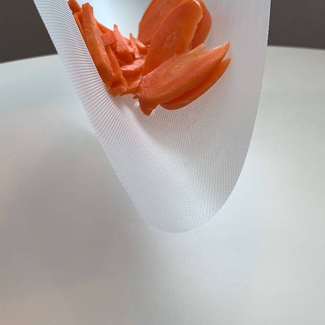쉽게 물들 수 있는 김치나 당근, 비트 같은 야채들 썰 때 이 위에 올려놓고 썰면 진짜 좋아요