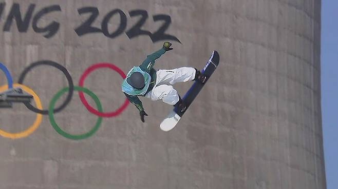 2월 15일 베이징 서우강 빅에어경기장에서 열린 2022 베이징동계올림픽 스노보드 여자 빅에어 결승 1차 시기.