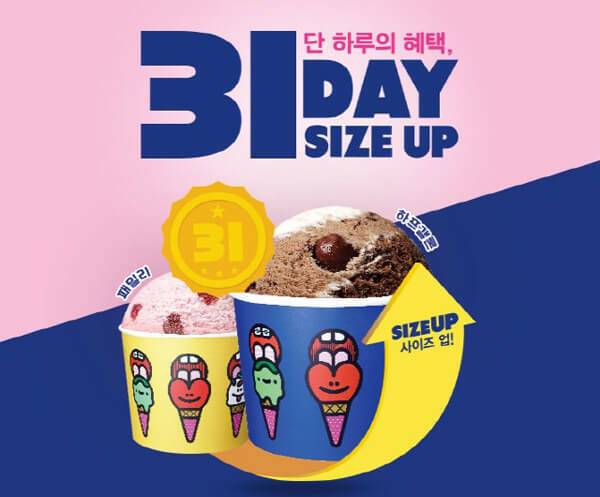 31은 배스킨라빈스를 상징하는 숫자다. ‘한 달 내내 매일 한 가지씩 먹을 수 있는 31가지 아이스크림을 갖췄다’는 의미가 브랜드명에 담겨있기 때문이다. 그래서 우리나라에서 이 브랜드는 ‘배스킨라빈스31’이라고 주로 불린다. 중요한 의미를 담은 숫자인 만큼, 두 달에 한 번씩 돌아오는 31일에 배스킨라빈스에서는 이벤트를 진행한다. 31일에 주문할 경우에는 무료 1 사이즈업이 이뤄지니, 놓치지 않기를 바란다.