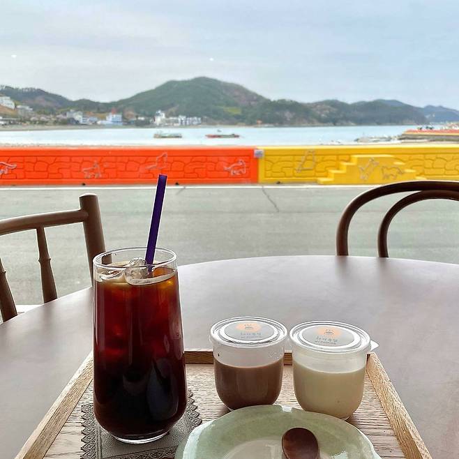 [식신TIP] 한적한 거제 마을에 위치한 푸딩 전문점. 귀염 뽀짝한 감성이 느껴지는 공간으로 여행 중 머무르기 좋아요. 통유리에 비치는 바다 풍경을 감상하면서 푸딩을 즐길 수 있는 곳!